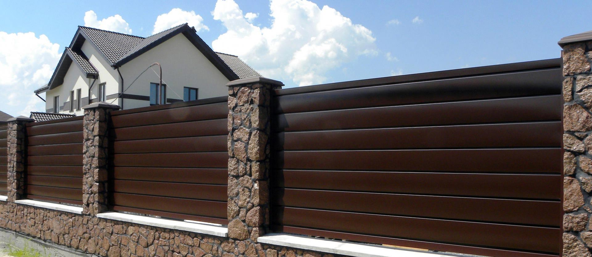 Благодаря низкой цене, широкому спектру цветовых решений, а также разнообразию толщин металла, типа профиля и форме верхней кромки, забор из профнастила (или профлиста) можно назвать самым популярным среди ограждений для частных домовладений. Такие заборы защищают от проникновения и посторонних взглядов, а также снижают уровень шума и пыли в частном дворе. При выборе профнастила стоит особое внимание уделить толщине металла - чем тоще металл, тем прочнее будет забор, и тем дольше он прослужит. Для забора из профнастила, мы рекомендуем выбирать толщину металла не менее 0,4 мм.